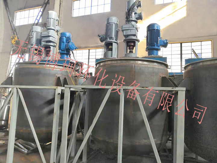 攪拌分散釜由鍋體、鍋蓋、攪拌器、電加熱油夾管、支承及傳動裝置、軸封裝置、溢油槽等組成,并配有電加熱棒及測溫、測壓表。由于用戶因生產工藝、操作條件不盡相同,攪拌形成一般有錨式、漿式、渦輪式、推進式或框式。支承座有懸掛或支承式二種。夾套內放置導熱油,由電熱棒加熱,夾套上開有進、排油、溢測量、放空及電熱棒、測溫等接管孔。夾套外壁焊接支座,鍋體下部開有放料口。